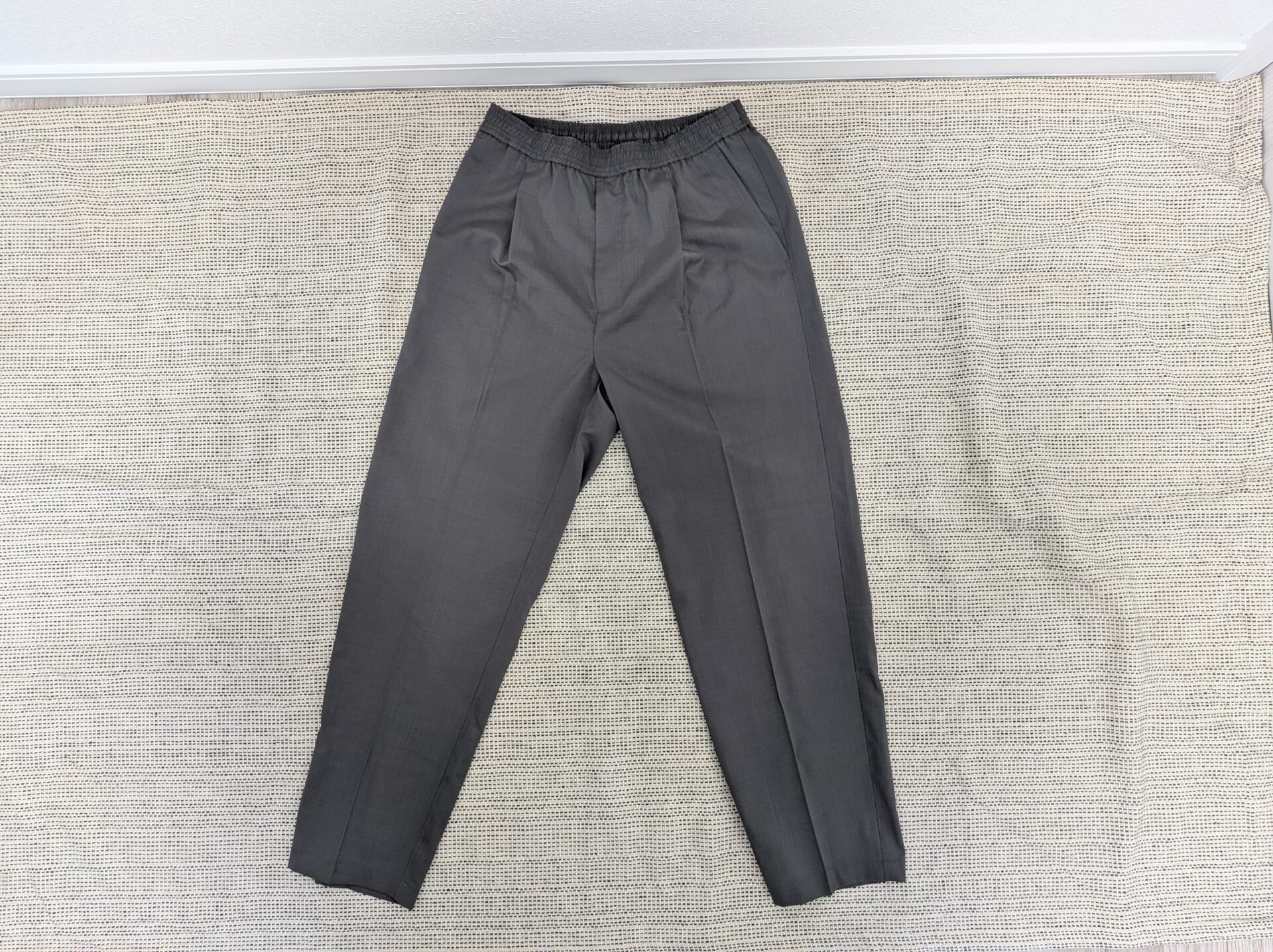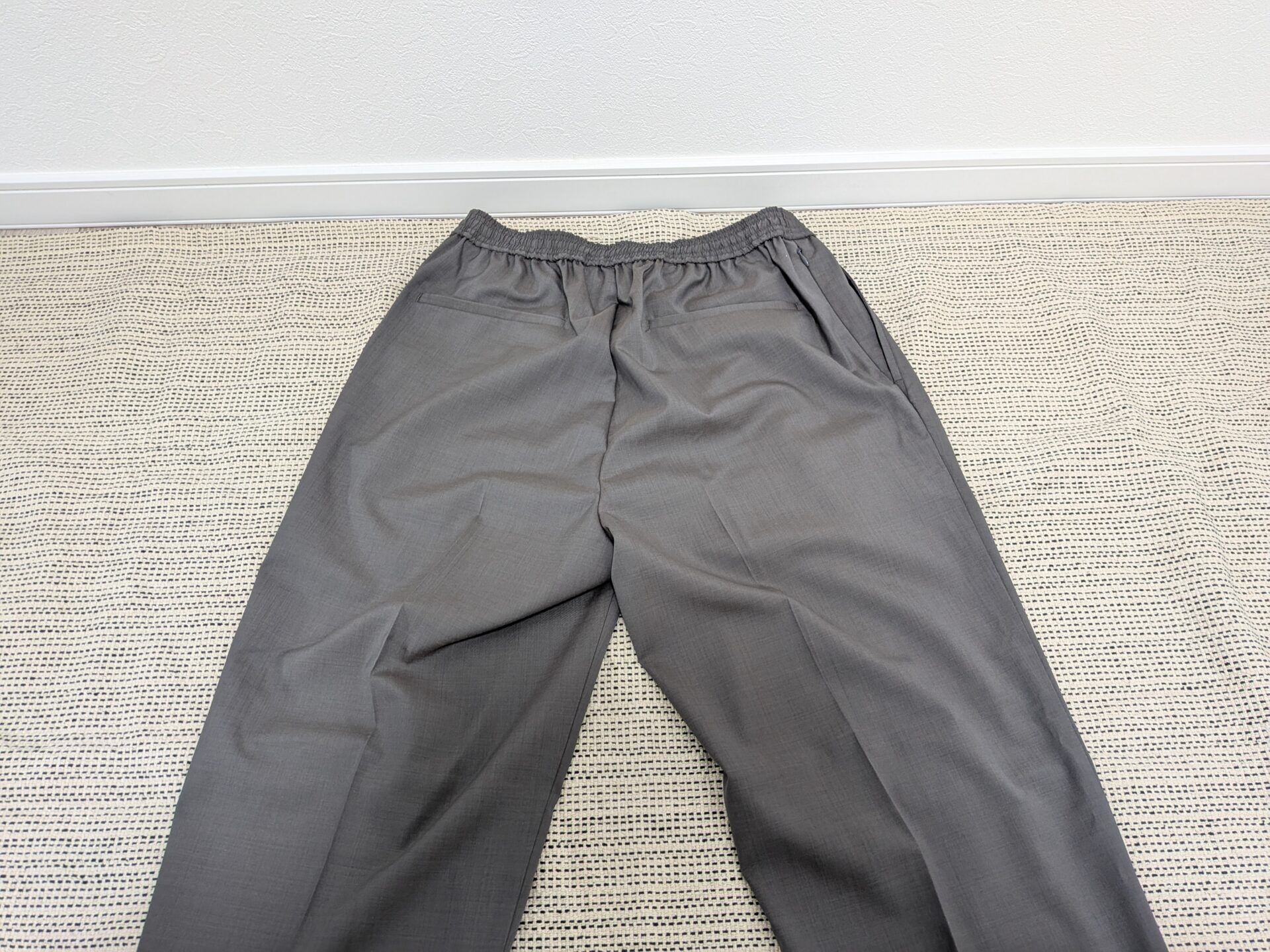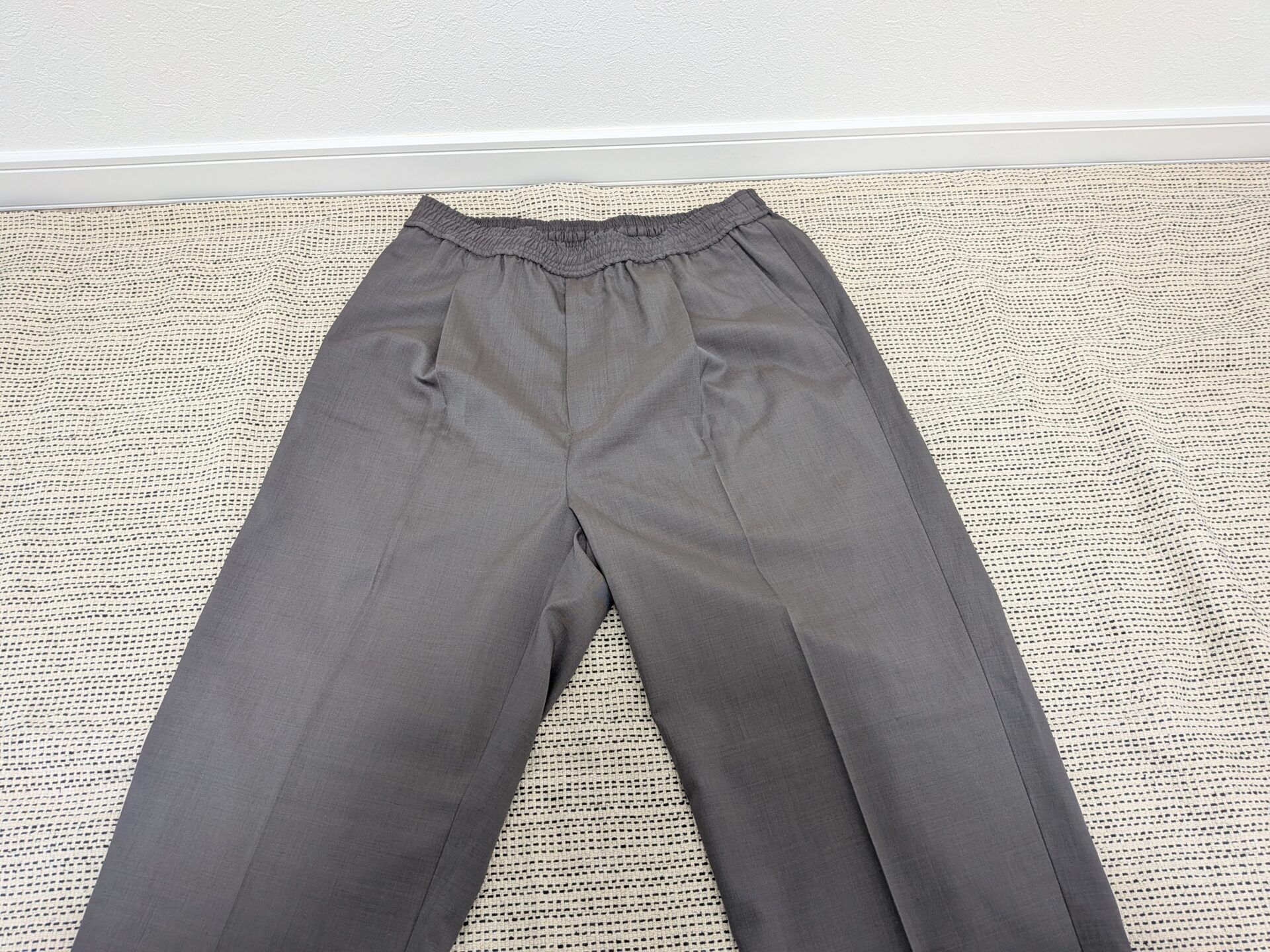 ワンタック入りのリラックスしたウエストイージー仕様ながら、クリース入りデザインや前開きファスナーのバランスが特徴。