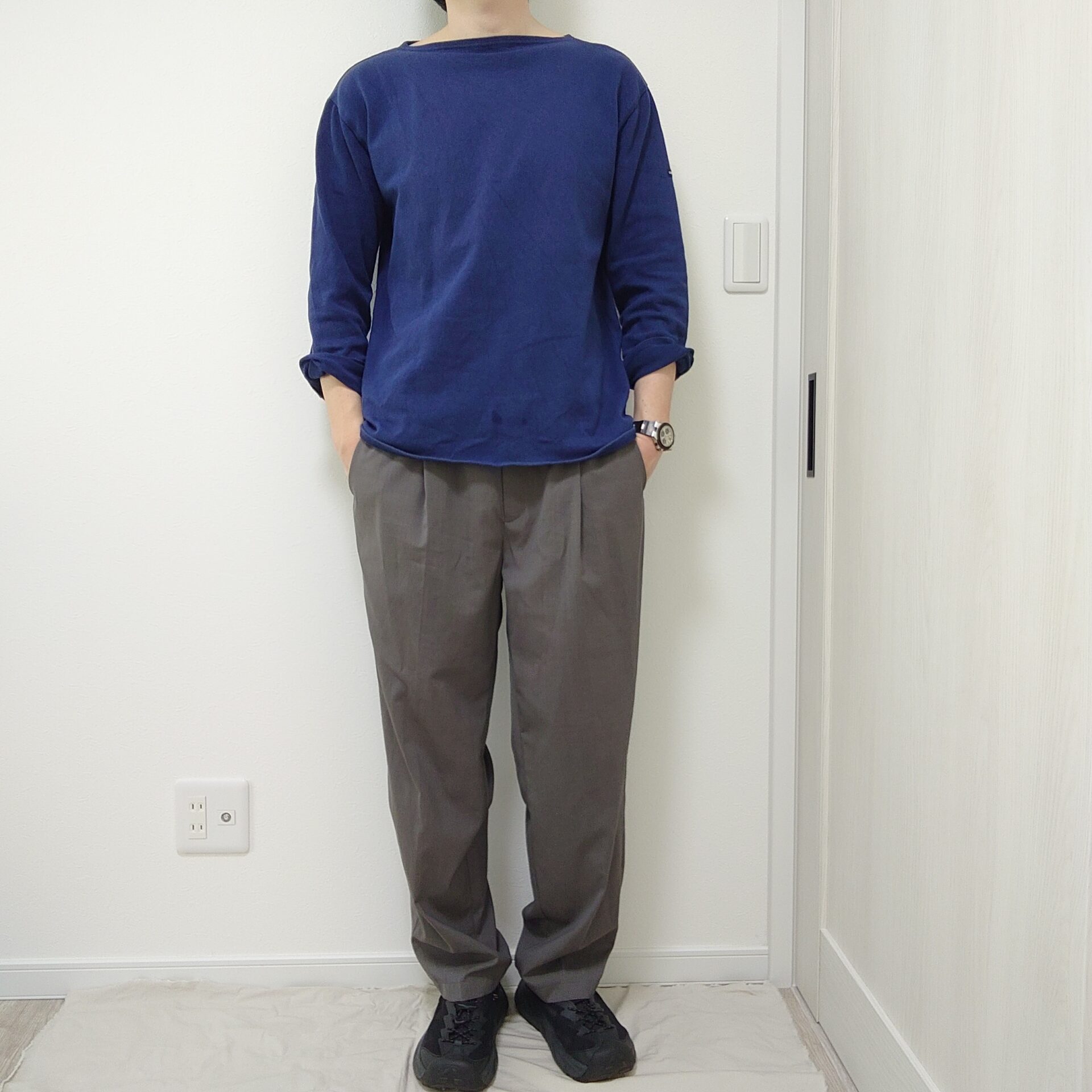 ↑はトロオルマイにセントジェームスのマリン、足元はHOKAのホパラ2を合わせています。トロオルマイはゆとりあるシルエットはHOKAのようなボリューミーなシューズにも問題なく合わせられます。