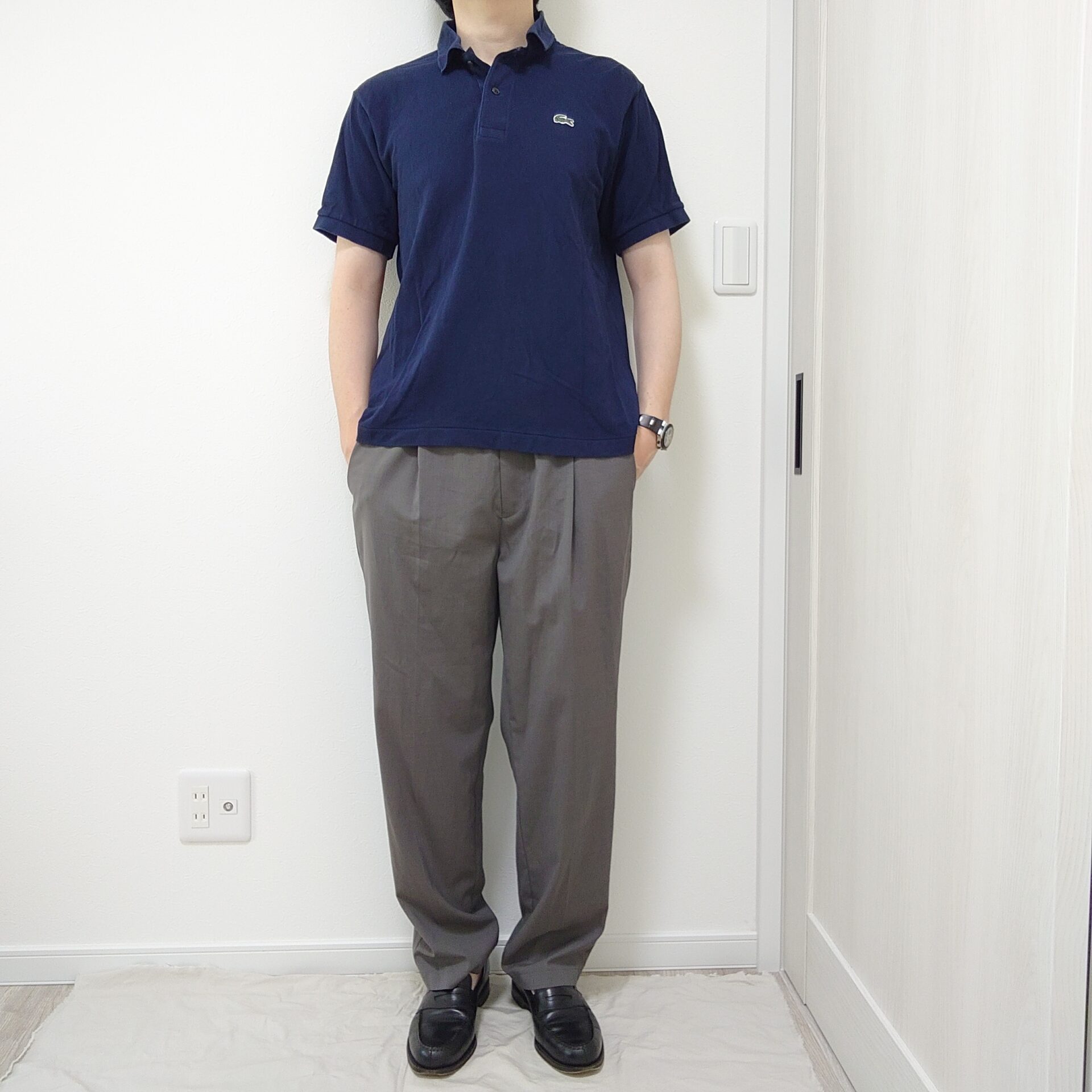 最後は、ラコステのL1212とトロオルマイパンツです。「The simple」といったところでしょうか。ラコステのくたびれ感が私は好きです。