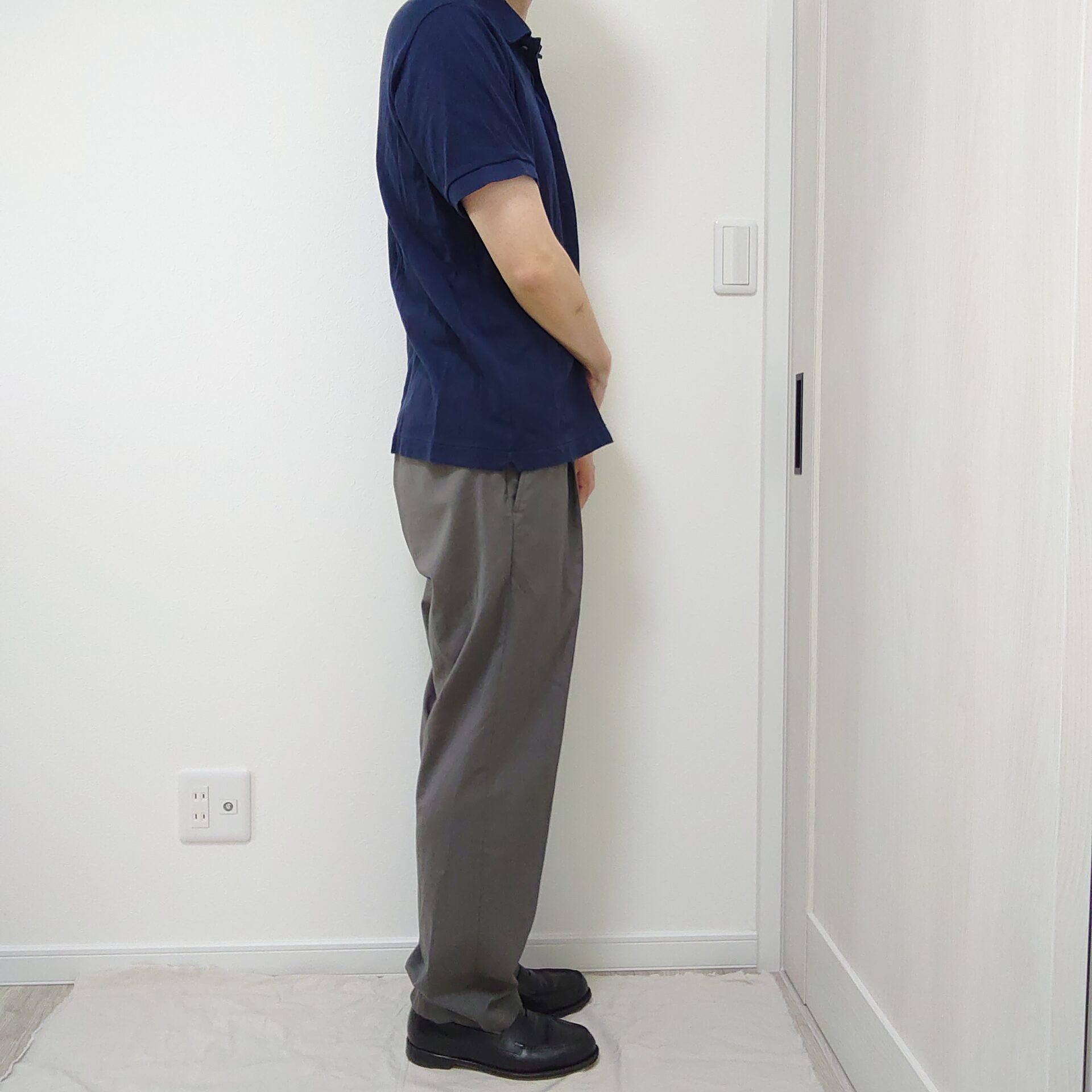 身長173cm体重64kg(股下76cm)の筆者はMサイズを着用しています。トロオルマイはゆったりしたシルエットなので、ジャストサイズを選ぶとよいでしょう。