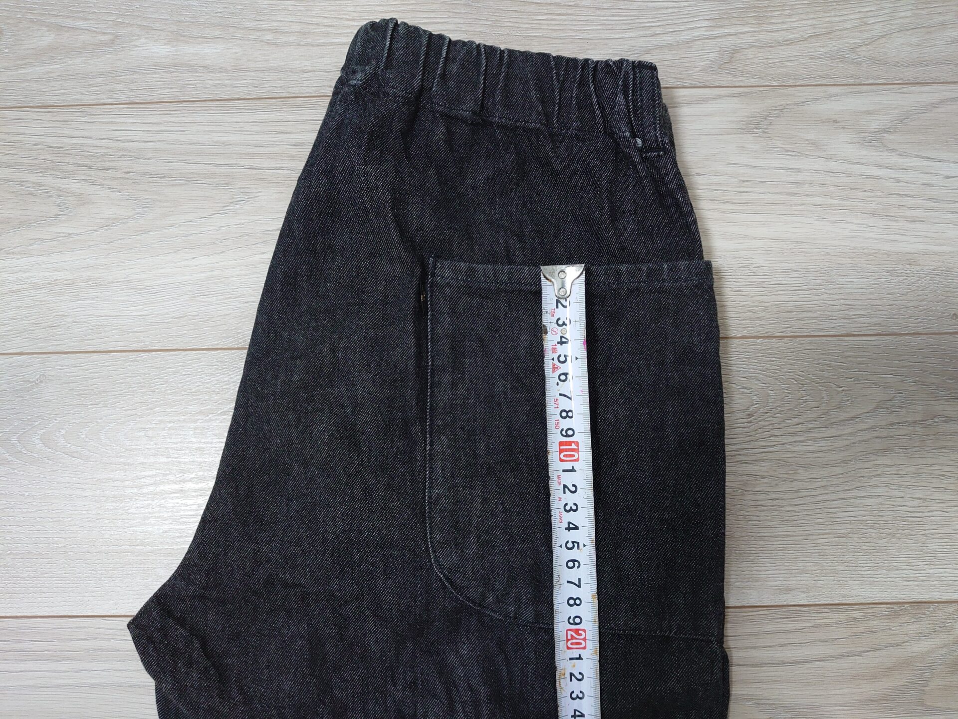 ウエストも2.0cm縮みましたが、ゴム紐仕様でウエストに合わせた状態でしっかり伸びてくれるため気にする必要はありません。