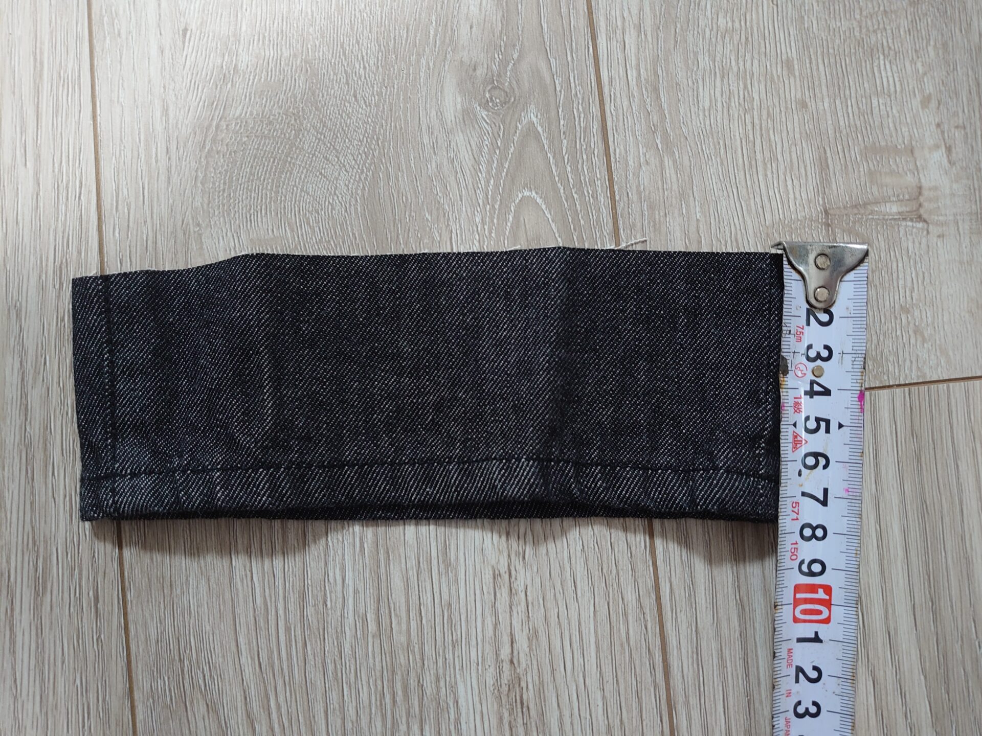 しかし、サイズ2でも足元にダボつきがありました。「ブラックデニムの良さを引き出すためにシルエットをキレイに見せたほうがいい」と思い、7.5cm裾上げを実施しました。