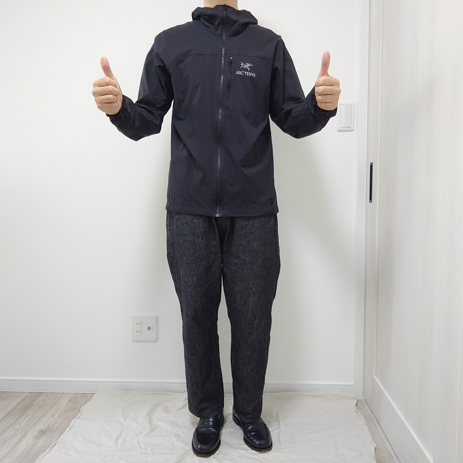 アークテリクスのスコーミッシュフーディとの相性もバッチリです。いや、SPINDLE BLACK!どのコーデにも合わせやすい。